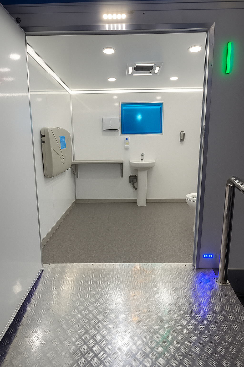Interior: ADA-compliant layout, accessible fixtures, non-slip flooring